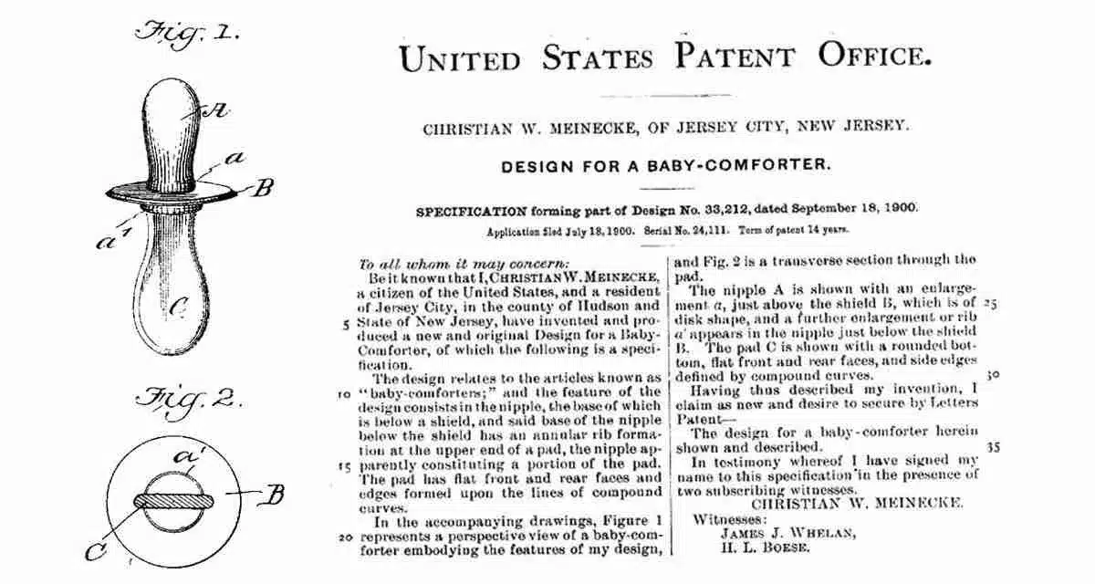 El primer chupón moderno como lo conocemos hoy fue inventado en los Estados Unidos en 1900 por Christian W. Meinecke. Su diseño era una tetina de goma con un escudo protector que impedía que el bebé se tragara el chupón. Este diseño no solo era más seguro, sino que también más práctico para los padres.